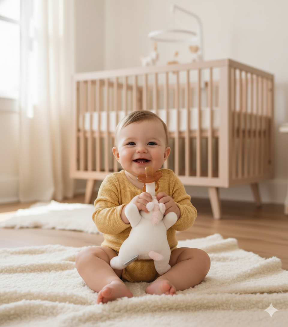 This Unicorn Plush Toy combines a cuddly soft companion with a silicone pacifier designed for babies 0m+. Safe, lightweight, and soothing, it promotes comfort, tactile stimulation, and early self-soothing. Ideal for sleep routines and imaginative play, it’s easy to clean, durable, and perfectly sized for toddlers.