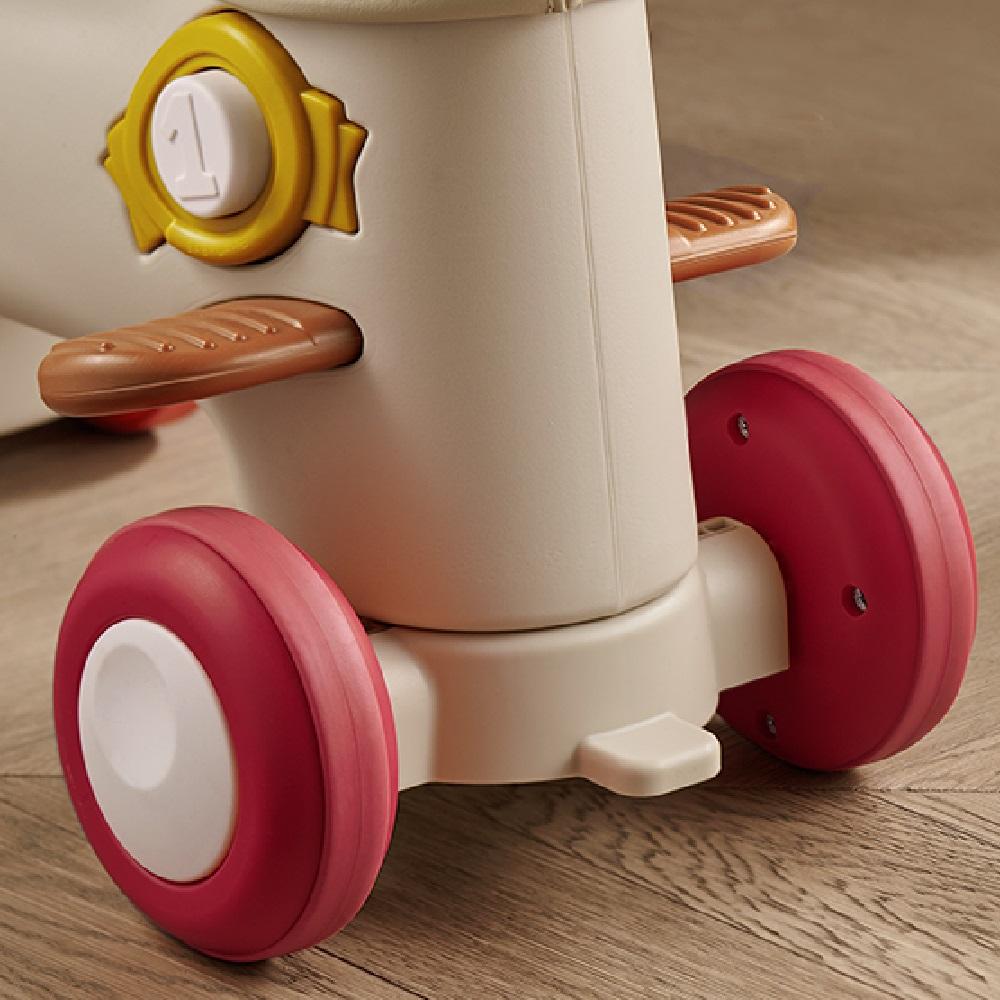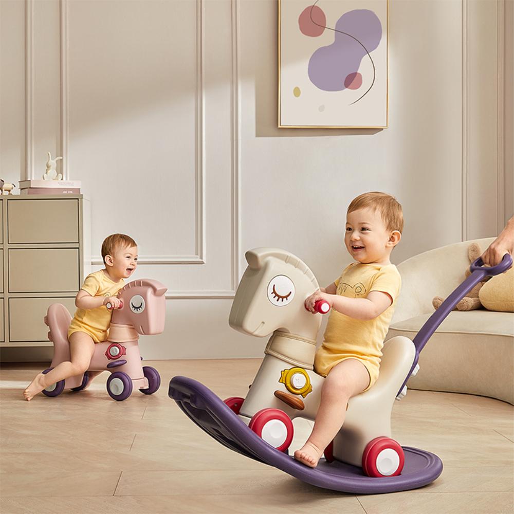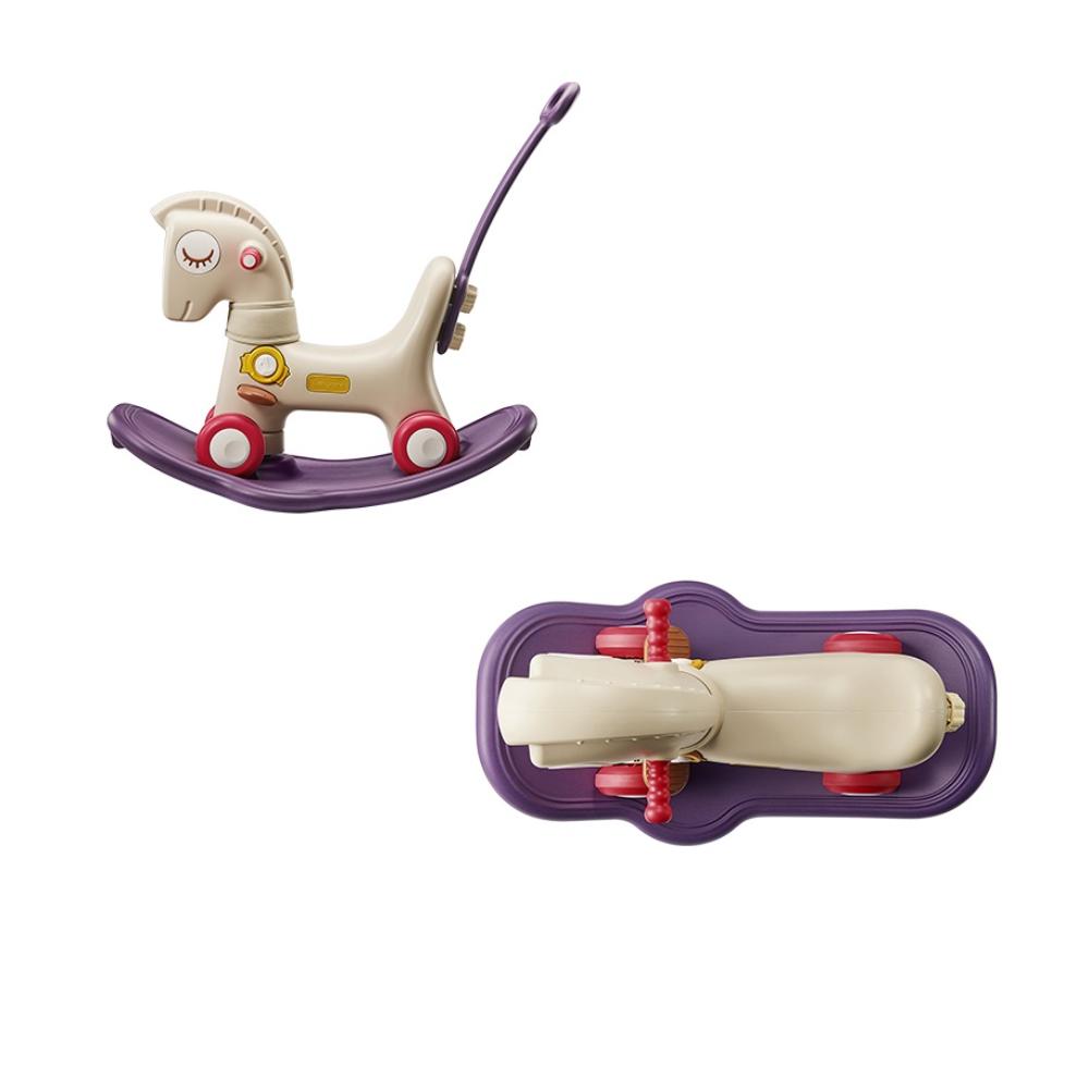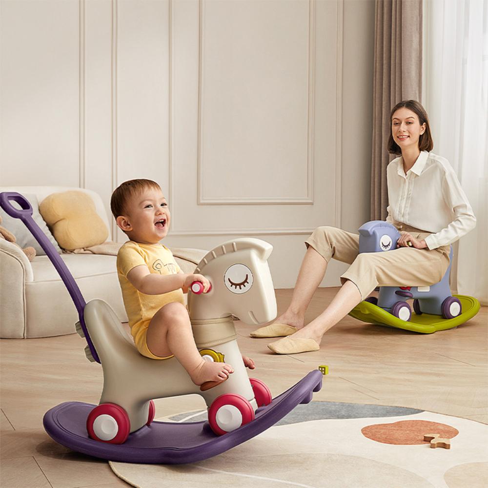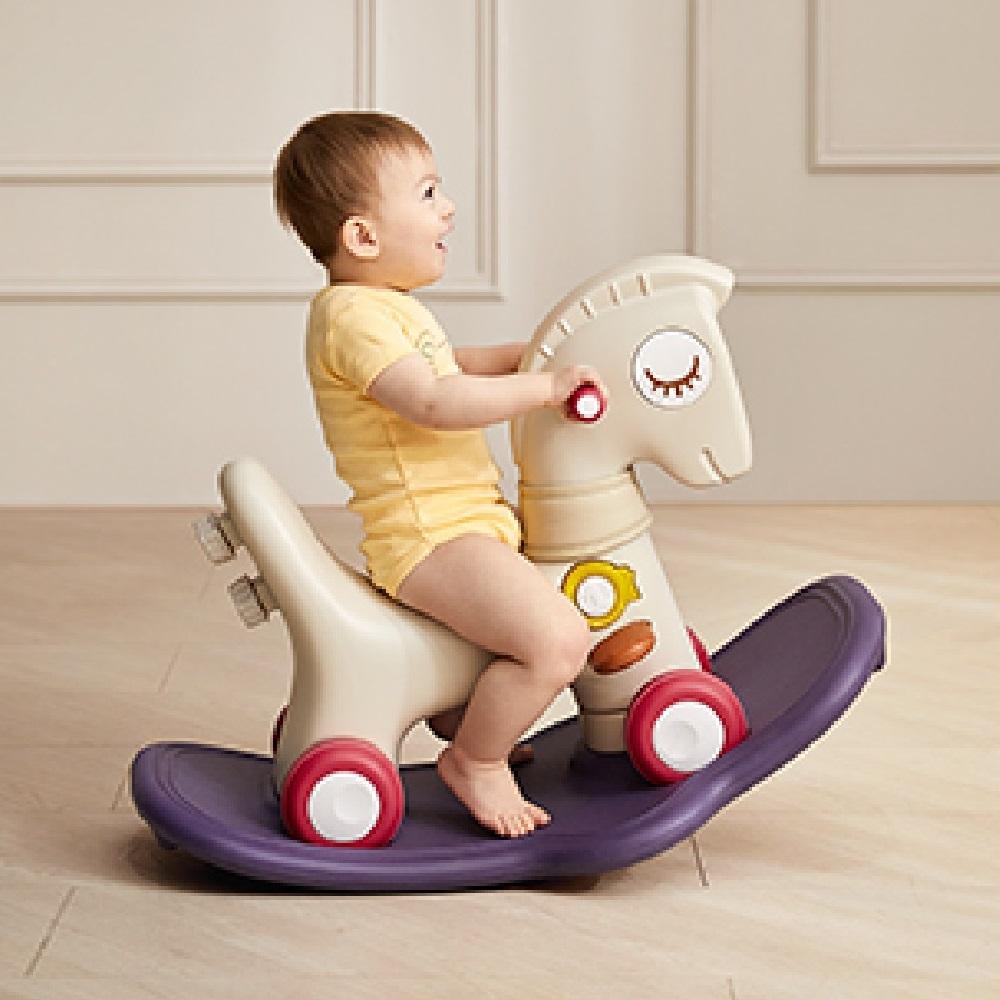 The Babycare Rocking & Sliding Horse offers versatile play with its three-in-one functionality: rocking, pushing, and sliding. Designed for children aged 6-12 months, it features a 25-degree limit steering mechanism for added safety and a curved floor structure with a low center of gravity for stability. The 35-degree arc design ensures anti-rolling, while the four-point load-bearing system and widened seat provide a stable center of gravity.