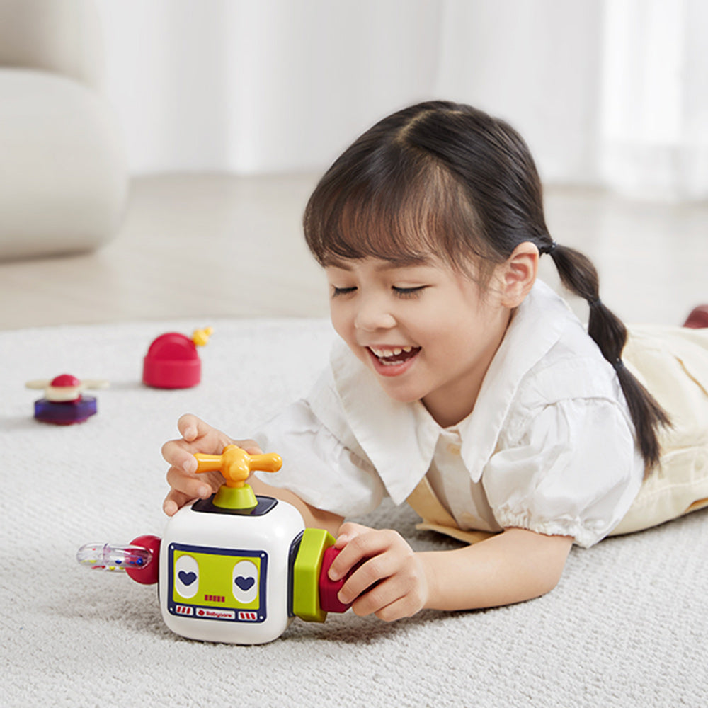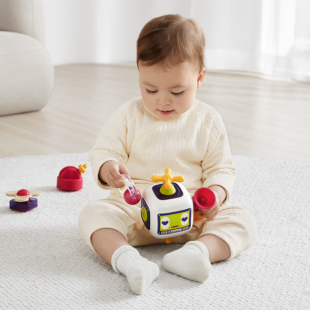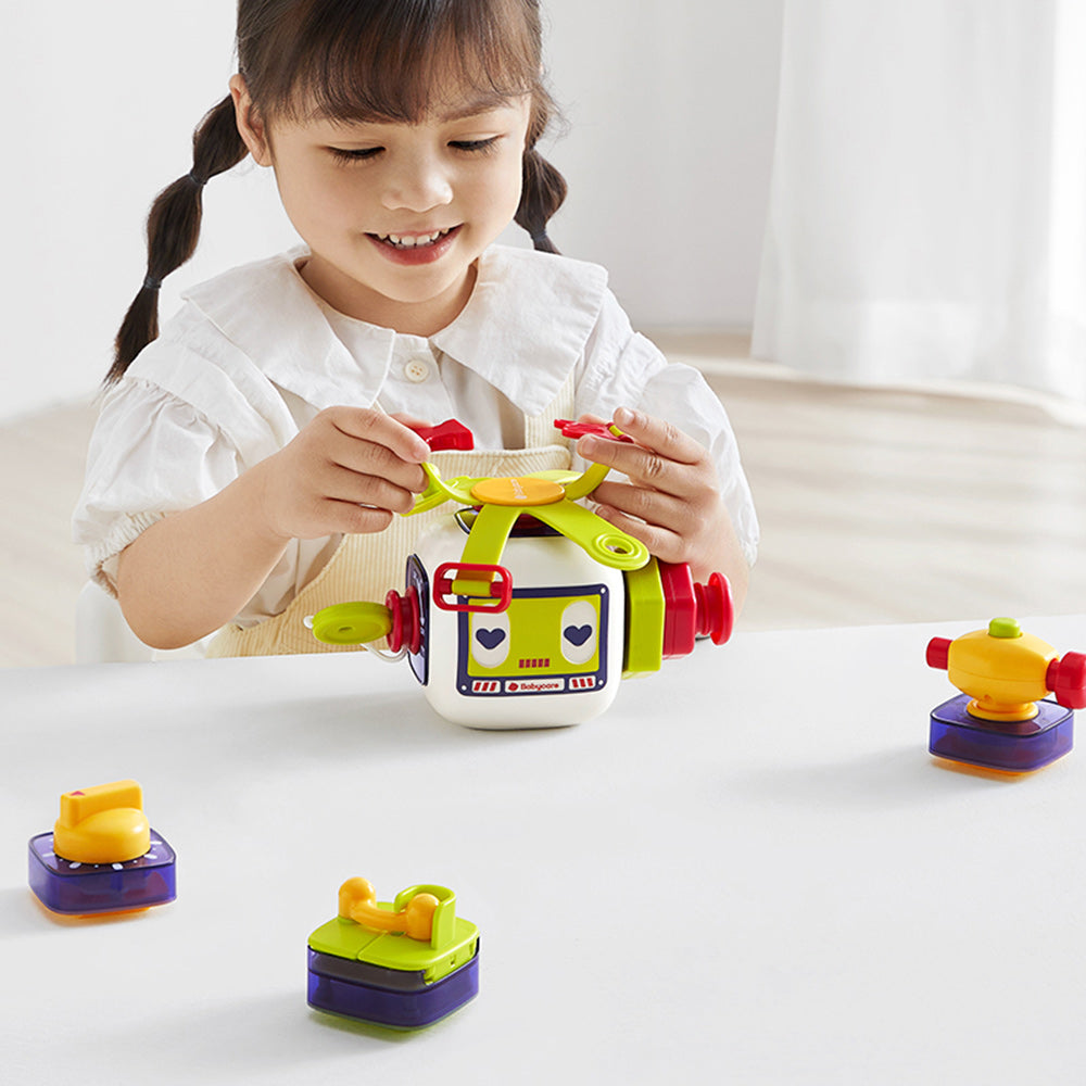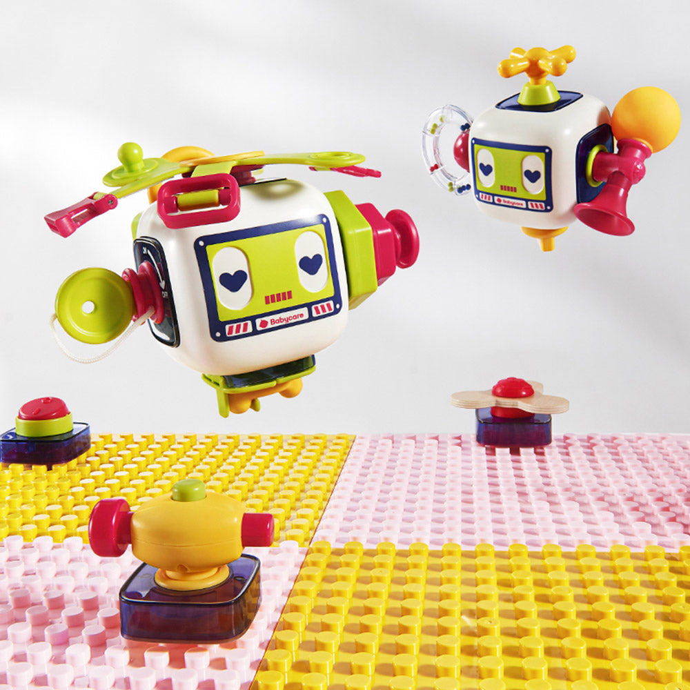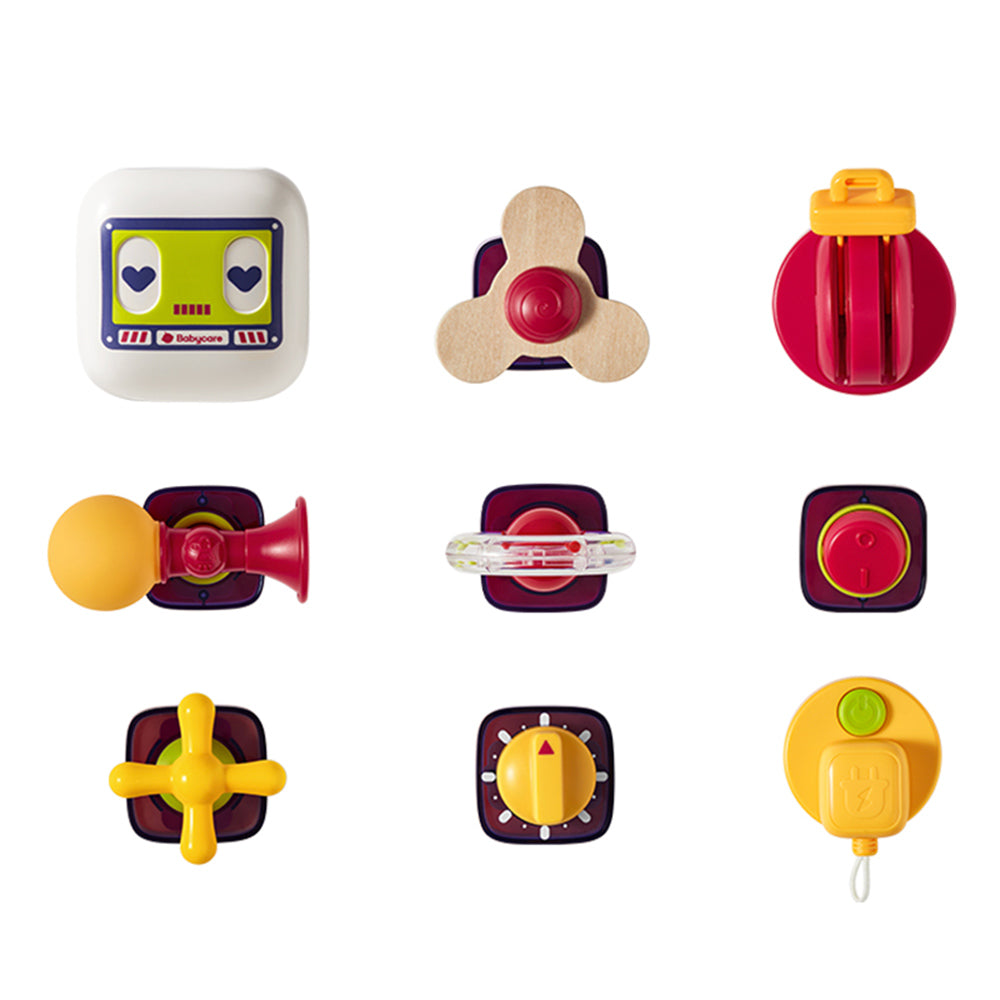 The Babycare busy block is designed to stimulate sight, touch, and hearing while enhancing fine motor skills and curiosity. It offers various play methods, including switches, valves, and sockets, to mimic real-life scenes and interactions. Versatile in use, it supports play in multiple settings - whether as a single block, combined with others, or on a building block table