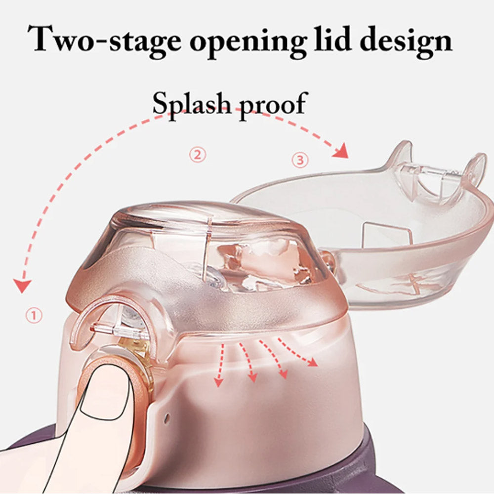 Introducing the Babycare Kids Vacuum Bottle, crafted for convenience, safety, and durability. It features an easy-to-grasp handle and a replaceable middle ring strap, making it versatile for home, school, or travel. The durable 316L stainless steel inner tank and 304 stainless steel outer tank ensure long-lasting performance. The V-valve bite design allows easy water flow, while the safety lock adds extra security for worry-free use.