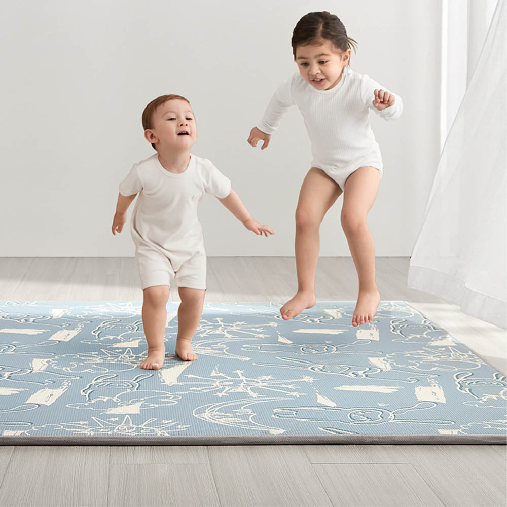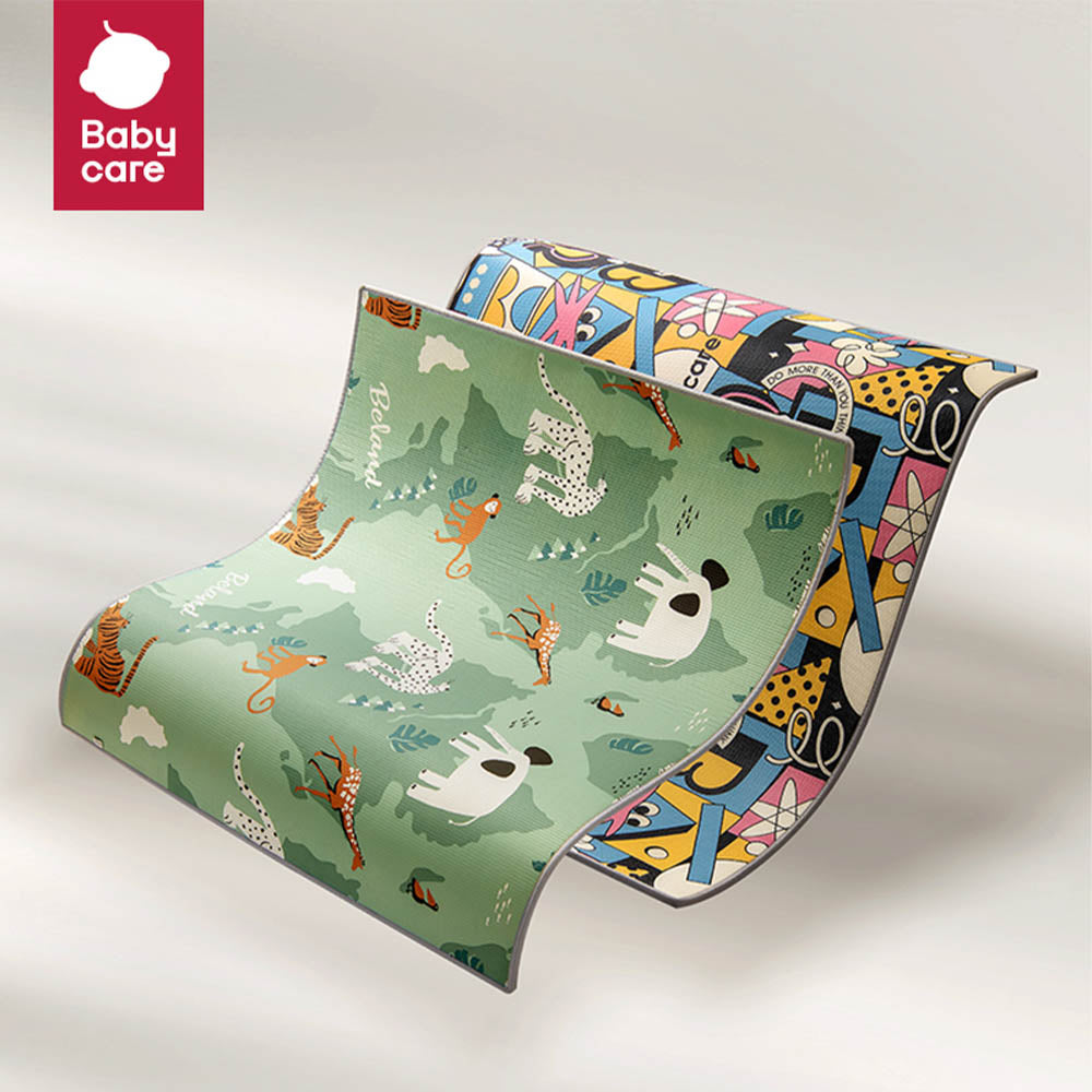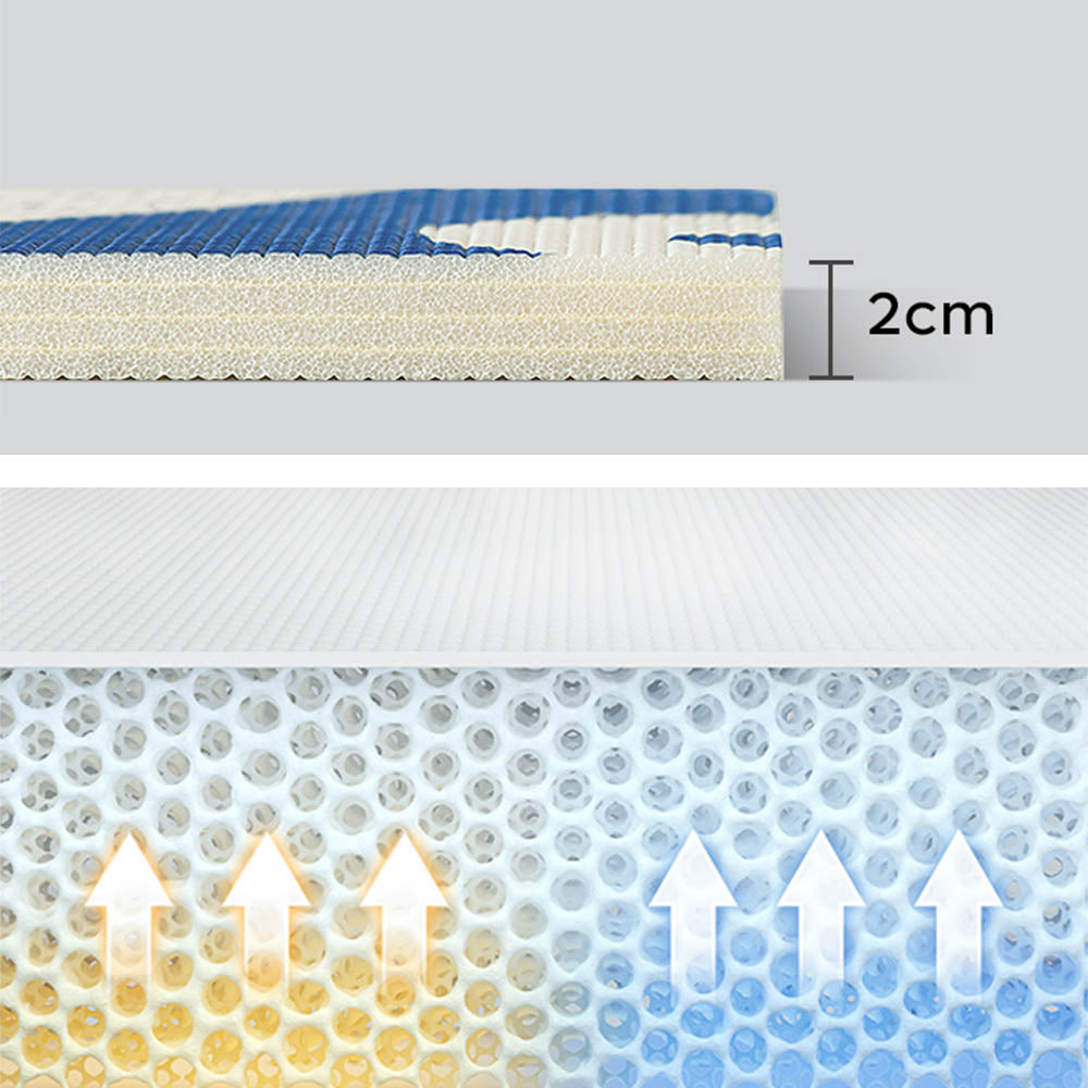 The BABYCARE Reversible Baby Playmat is designed for comfort and durability, making it perfect for growing babies. Featuring an elastic cushion surface, this mat is significantly softer than latex, ensuring a gentle and safe experience even during jumps and bumps. Built with advanced "black technology," its honeycomb-arranged micro air cushions prevent dents and deformation over time.