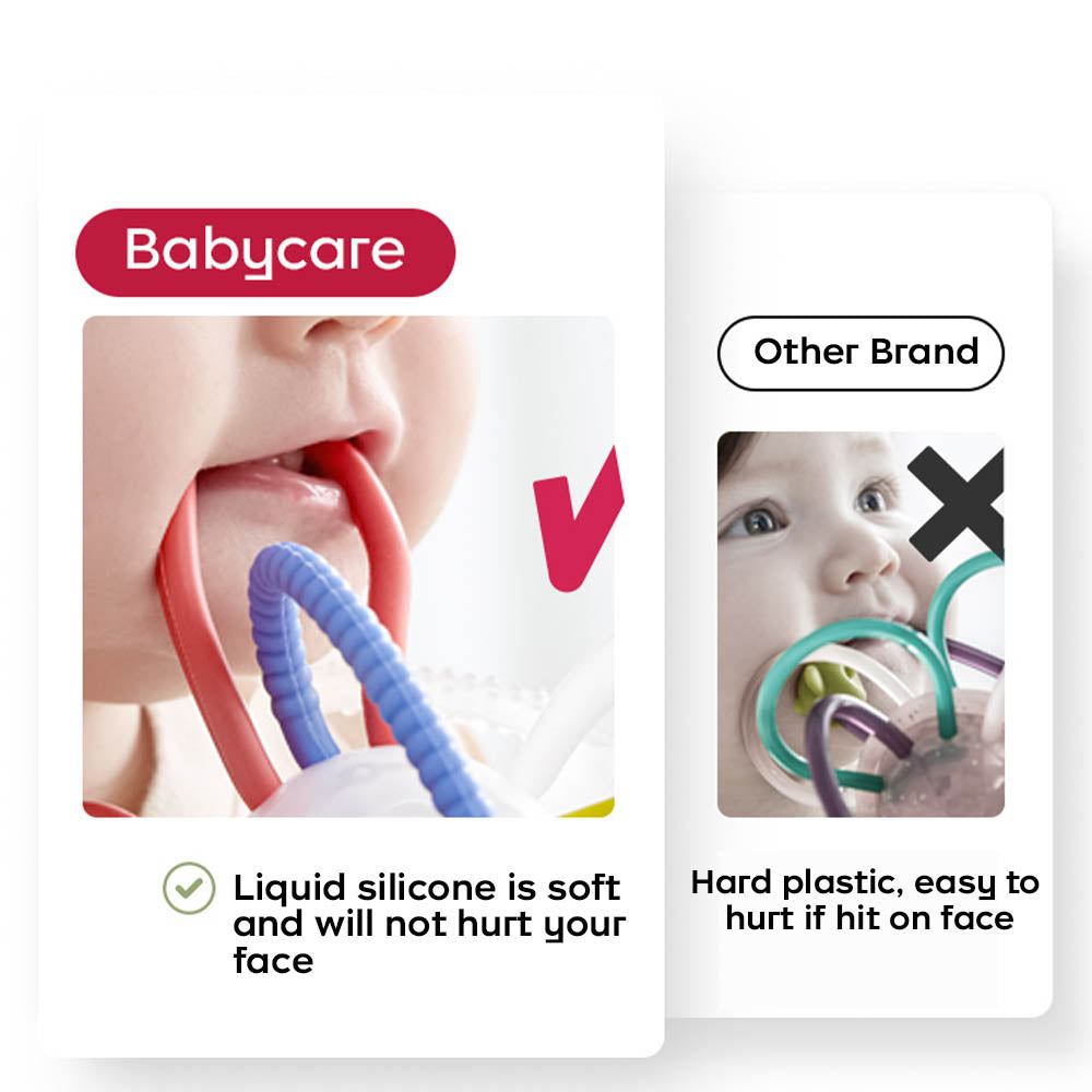 The BABYCARE Baby Teether Rattle combines soothing relief with engaging play. Crafted from soft, non-toxic silicone, it's perfect for teething babies, providing gentle gum massage and relief. The integrated rattle feature adds a fun auditory element to keep your little one entertained. Designed for easy grasping, this toy helps develop fine motor skills while ensuring safety with its BPA-free, easy-to-clean material.