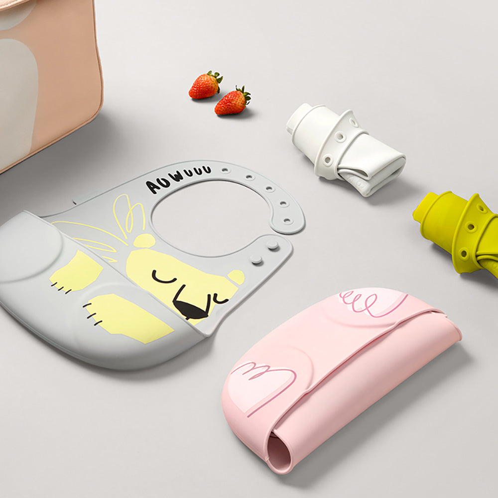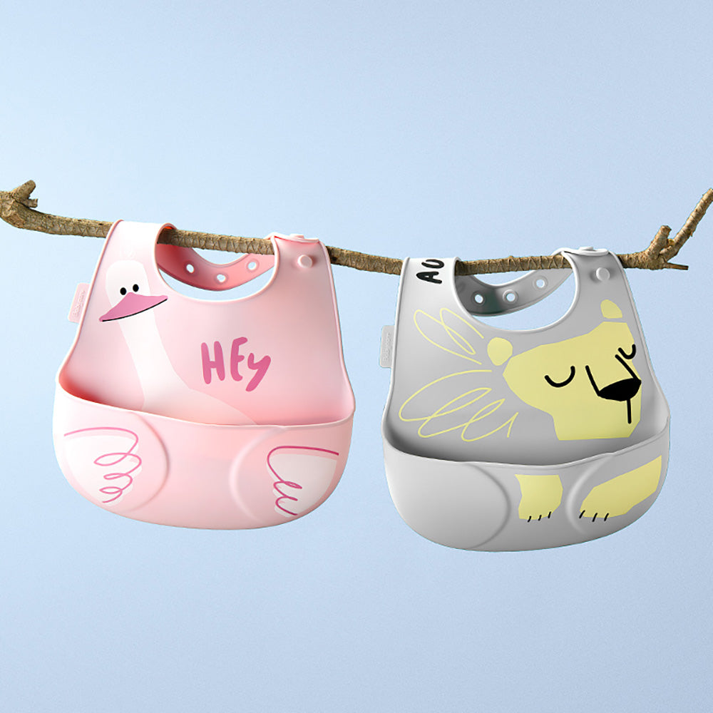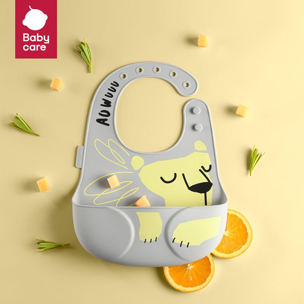 BABYCARE Silicone Bib offers a practical and comfortable solution for mealtime messes. Made from soft, flexible silicone, it is gentle on your baby's skin and easy to clean. The deep catch-all pocket collects spills and crumbs, while the adjustable neck strap ensures a snug, customizable fit as your child grows. Waterproof and dishwasher-safe, this bib simplifies feeding and cleanup, making it a must-have for busy parents.