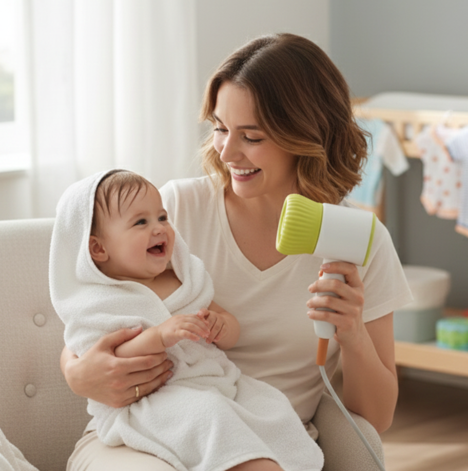 Designed for gentle yet powerful drying, the Babycare Hair Dryer uses a high-speed motor and advanced negative ion technology to dry hair quickly while reducing frizz. Lightweight and quiet, it is suitable for daily family use, including delicate baby hair.