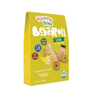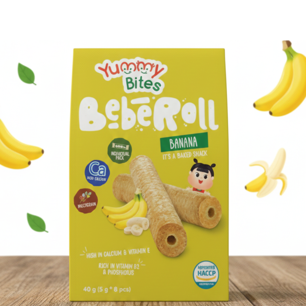 This pack of Beberoll Banana 40g-flavored roll snacks is suitable for children from 9 months of age. Made from 8 types of Korean grains, the light texture and easy-to-hold shape help support early motor development. The snacks are gentle for babies learning to chew and provide minerals such as calcium and phosphorus. The range includes 6 flavors: Cheese, Strawberry, Blueberry, Orange, Banana, and Chocolate.