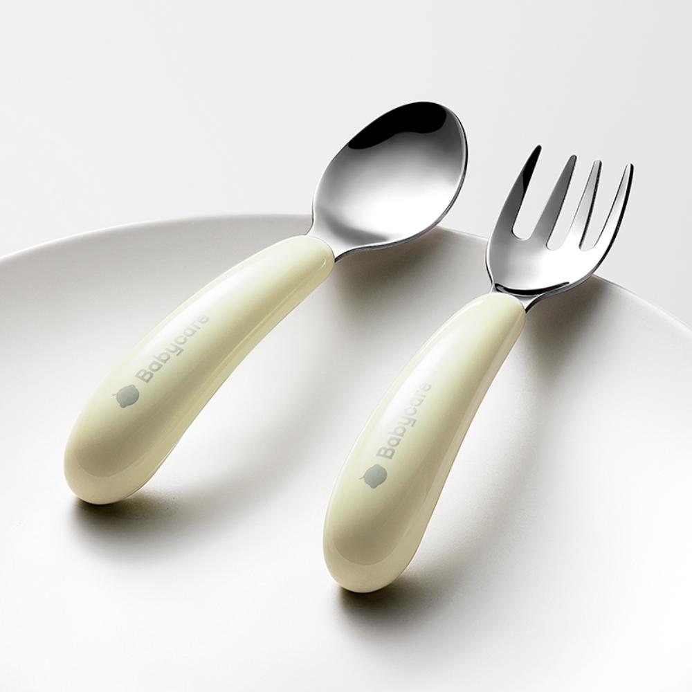 Babycare - Stainless Steel Fork & Spoon Set - White