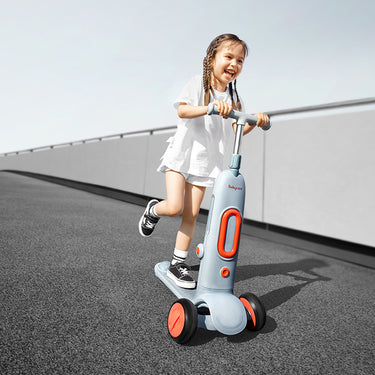 The Babycare Vilotte Kid Scooter combines safety, fun, and versatility in one ride. Featuring splayed wheels, thickened tires, dust-proof foot brakes, and competition-grade bearings, it provides a stable and secure experience. The scooter includes six music tracks, four-speed height adjustment, and luminous tires that light up without batteries. The ride-and-slide two-in-one design adds extra excitement for children.