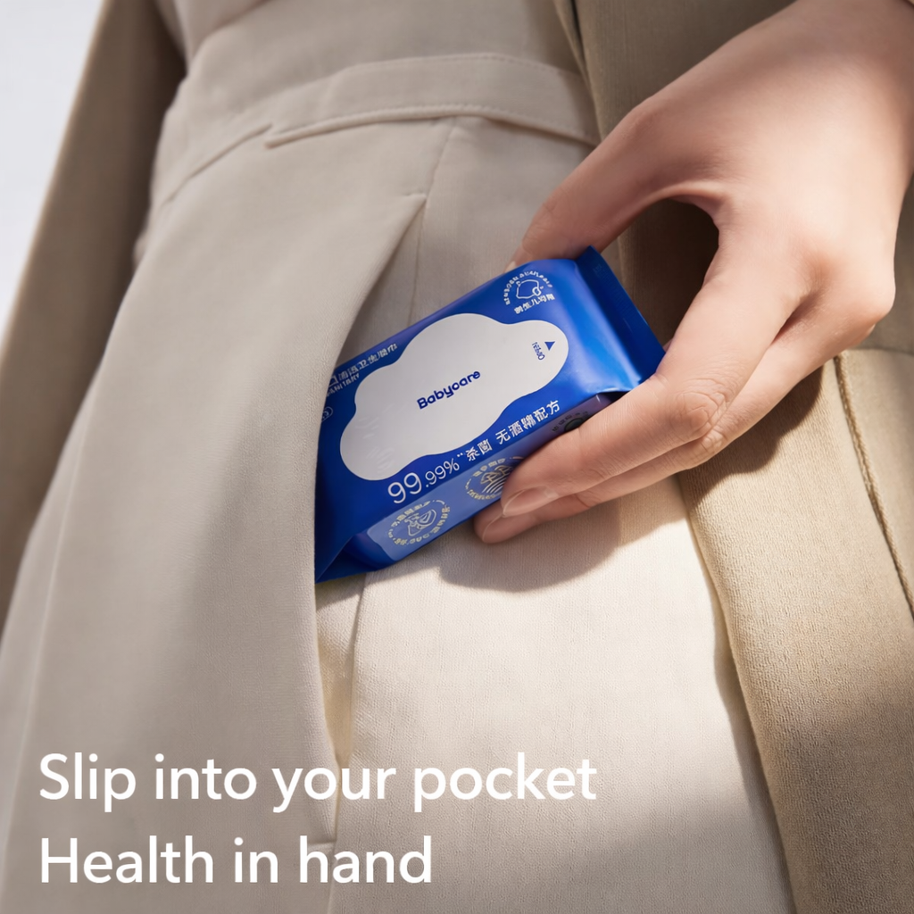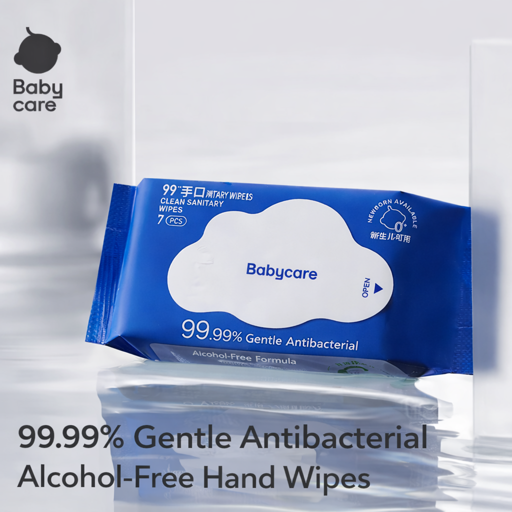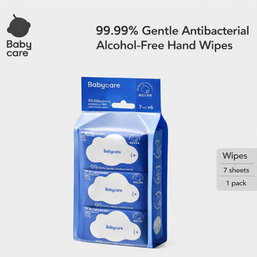 Babycare 99.99% Gentle Antibacterial Alcohol-Free Hand Wipes are designed for everyday hygiene with baby-safe care. The mild, non-irritating formula effectively removes germs while staying gentle on sensitive skin. Compact and portable, each pack fits easily into pockets or bags, making it ideal for on-the-go cleaning of hands, mouth area, and small messes. Safe for newborns and suitable for the whole family.