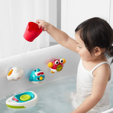 Make bath time fun with the Babycare Bath Toy Set. This multicolor set includes five different bath toys, perfectly sized for little hands to hold and play with. Designed to float and squirt water, these toys keep children entertained while helping them develop hand-eye coordination. Safe, engaging, and colorful, they make bath time both enjoyable and educational.