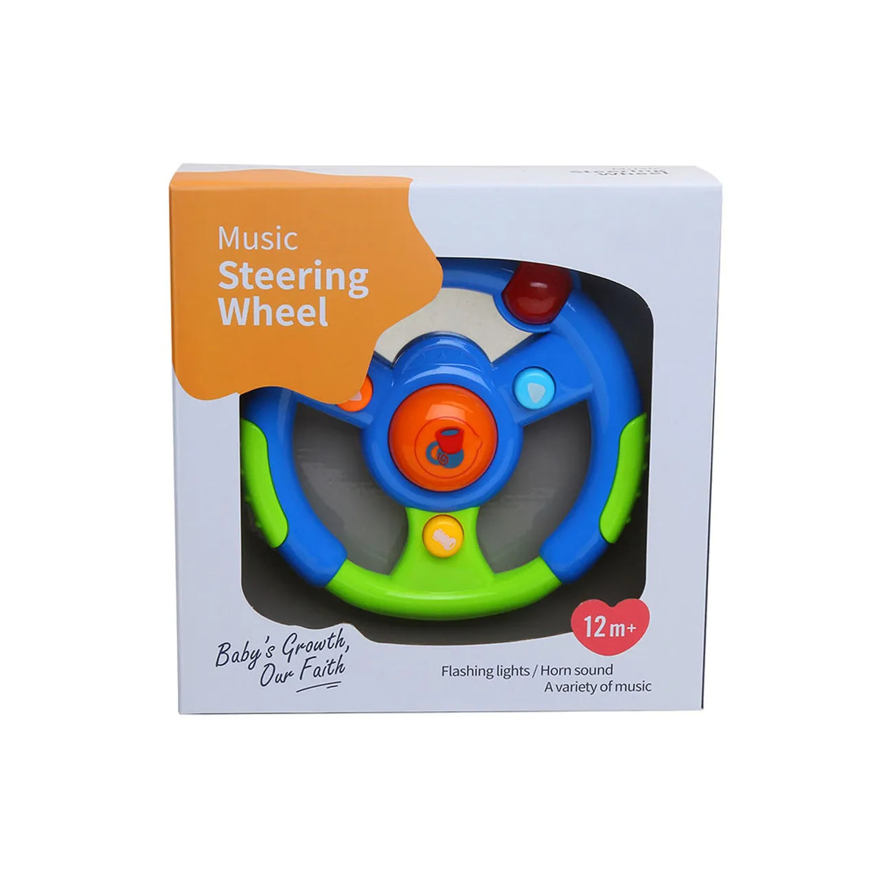 This Babycare Toddler Music Steering Wheel in blue combines imaginative play with interactive sounds. Designed for toddlers 12m+, it promotes hand-eye coordination, fine motor skills, and early sensory development. Its colorful, safe design encourages creative role play and fun learning.