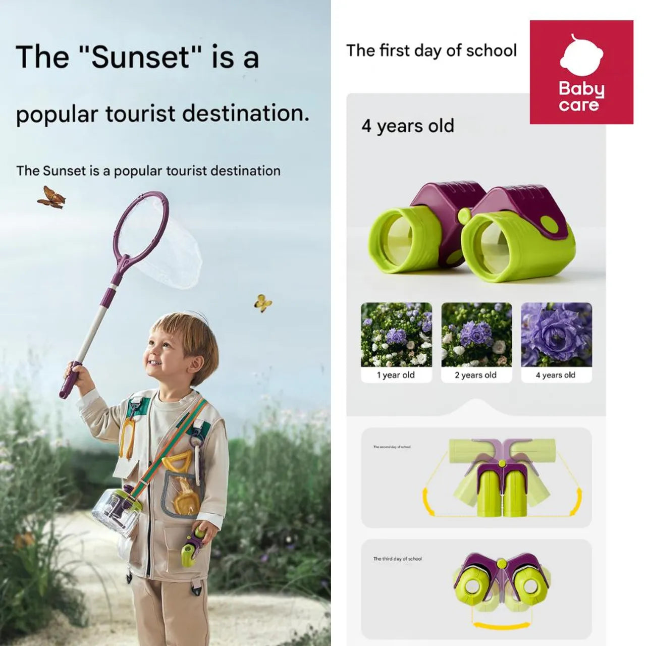 The Babycare 8-Piece Explorer Adventure Set inspires kids to discover nature through imaginative play. Featuring safe, realistic explorer tools, it encourages outdoor fun, curiosity, and active learning while supporting sensory and motor skill development.