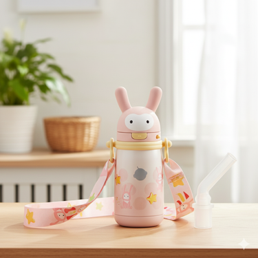 Babycare - Bunny Staged Vacuum Bottle- 300 ml- Pink