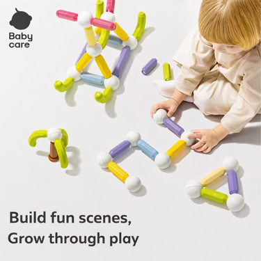 This Babycare 60-piece magnetic stick set focuses on transportation themes, allowing children to build cars, trains, aircrafts, and imaginative vehicles. With smooth, strong magnetic connections, the multicolour pieces encourage creativity, engineering thinking, and hands-on discovery. Kids can experiment with shapes and structures, improving fine motor skills while exploring the world of motion and design in a safe, fun, and engaging way.