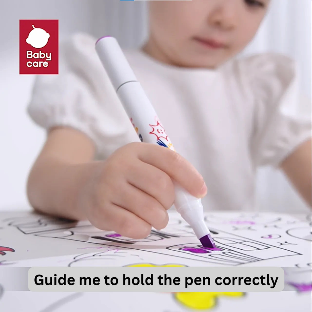 This set of 12 vibrant color markers is perfect for little artists to explore their creativity. Made with washable, non-toxic ink, these markers are safe for kids and easy to clean from hands and clothes. The child-safe rounded tips provide smooth, consistent ink flow, while the easy-grip design is ideal for small hands. Neatly packed in a compact case, they’re perfect for home, school, or travel use.