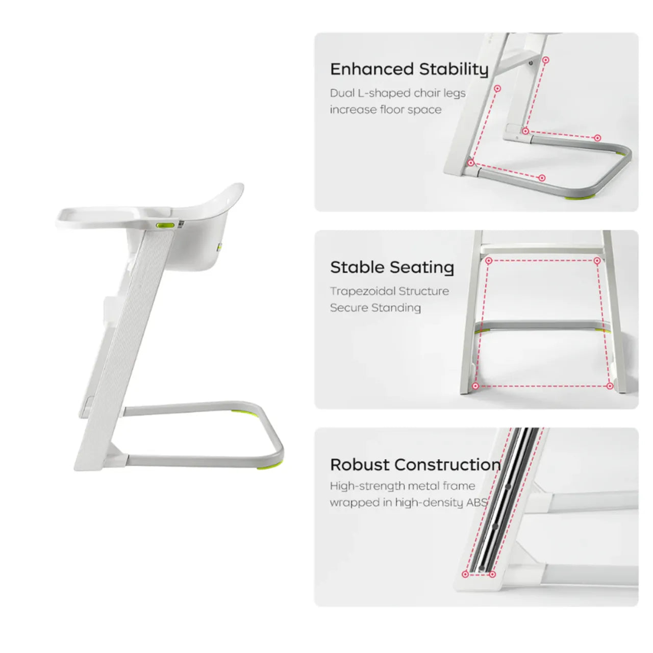 The Babycare Water-Resistant High Chair is designed with superior stability and durability for your baby’s safety and comfort. Featuring a dual L-shaped leg design, trapezoidal body structure, and high-strength metal frame wrapped in high-hardness ABS, it ensures maximum balance and strength. The water-resistant seat makes cleaning effortless, while its ergonomic design keeps your baby comfortable during mealtime.