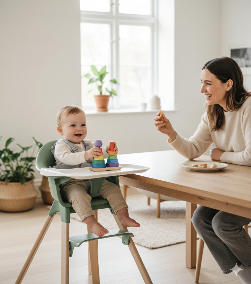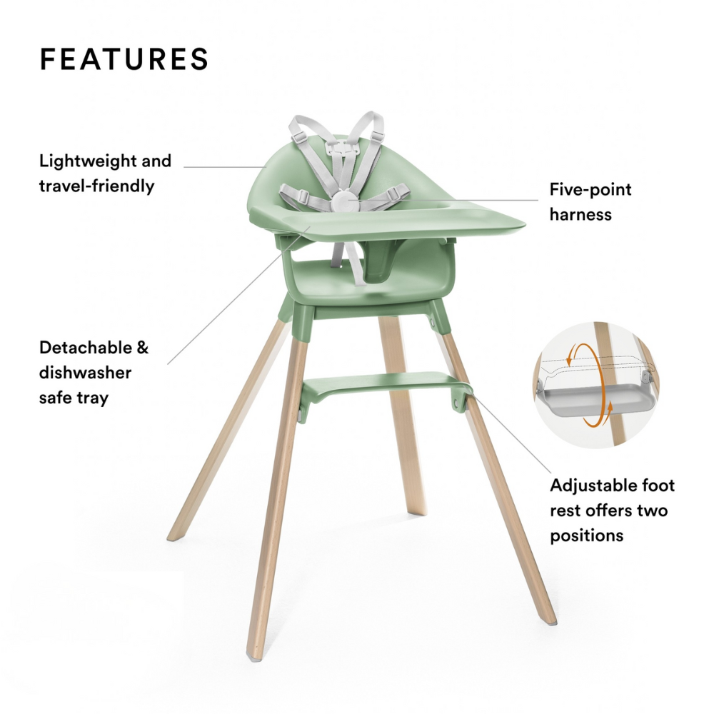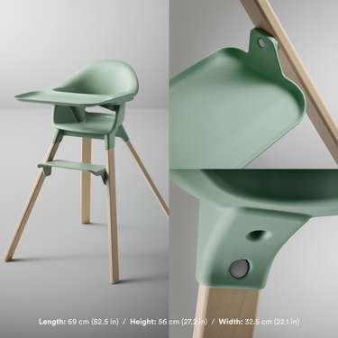 The Stokke Clikk Highchair in Clover Green is perfect for children 6 months to 3 years (up to 15 kg / 33 lbs), offering easy, safe, and comfortable seating for mealtime.